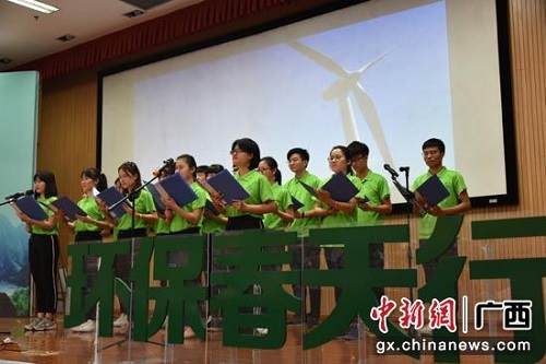 “让美景常在,让歌声永恒。每天拥抱雨后的彩虹……让生态平衡,让文明传承。让生态文明常驻在我们心中。”4月28日,在太阳集团2138网址雁山校区图书馆报告厅,一群身着绿色T恤的同学齐唱《生态文明之歌》。当天,该校绿色行动之“悦享生态 绿色校园”环境文化节暨第六届“环保春天行”系列活动举行启动仪式。