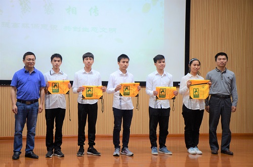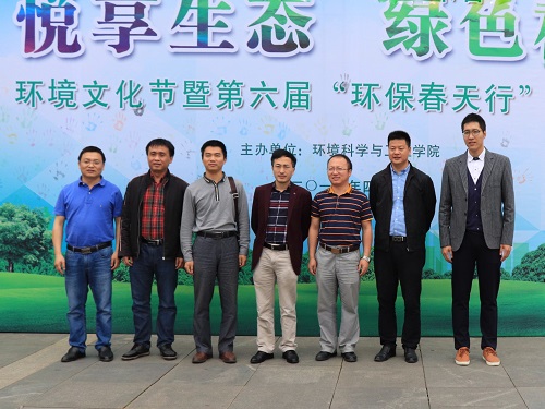 党的十九大报告中指出“生态兴则文明兴,生态衰则文明衰”。为学习贯彻党的十九大精神,积极实践专业所学,4月28日上午,学院主办的“悦享生态,绿色校园”环境文化节暨第六届“环保春天行”系列活动在雁山校区图书馆报告厅正式启动,本次文化节聚焦“生态文明”与“绿色校园”两大热点,旨在宣扬环保理念、普及环保知识、践行环保公益、建设美丽校园开展系列校园文化活动。学校党委宣传部部长叶昊出席启动仪式并致辞,学工部、校团委、环境学院相关负责人、桂林市环境保护局宣教科代表,部分教师与学生代表共同参与了本次活动。