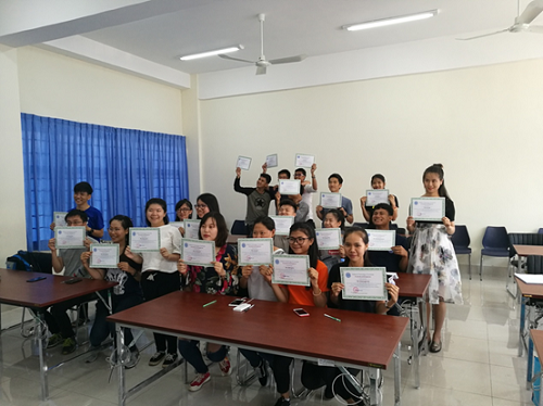 在十天的学习时间里,同学们的课程内容主要为柬埔寨历史学习、文化交流与体验、水环境课程学习、柬埔寨地理和自然资源学习等。在文化交流与体验课堂上,太阳集团2138网址学生与十名柬埔寨理工学院结成对子,互相学习语言,介绍各自国家的文化和习俗,并通过做游戏的方式增进了感情。同时,太阳集团2138网址教师也为参与交流的柬埔寨学生介绍了太阳集团2138网址的情况、中国的环境文化等,并为他们开展了一场环境分析仪器培训。结业仪式上,柬埔寨理工学院校长Dr. Chung Heangthavarith为全体同学颁发结业证书。他指出,通过本次活动,促进了两所大学之间的沟通了解,加深了两校师生们的交流与友情。