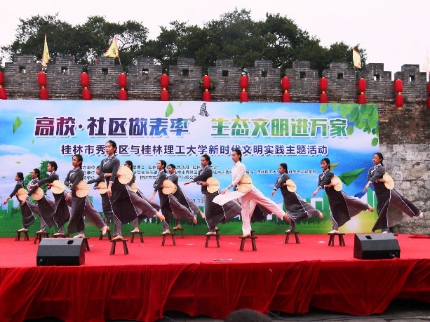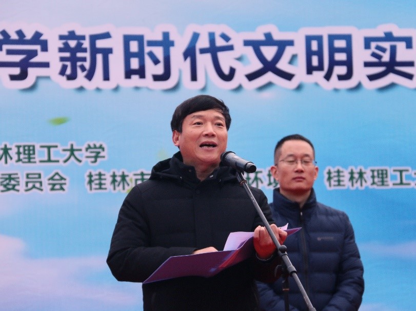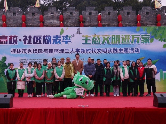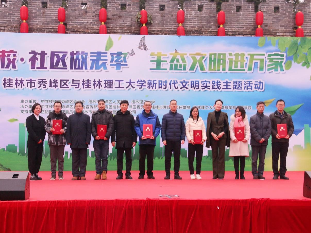 主题活动以啦啦操《活力源泉》开场,我校校长解庆林,秀峰区委副书记、副区长刘丰华先后为活动的致辞。解庆林校长表示:高校作为人才培养主阵地、服务社会战略高地,加强生态文明教育,增强青年大学生环境保护意识和行动自觉,引领带动社会更加积极地践行人与自然和谐共生理念,是光荣的使命和义不容辞的责任,并寄语我校学子要深入基层社区,推广环保知识,宣传环保理念;秀峰区委副书记、副区长刘丰华介绍了秀峰区与我校联合开展实践育人工作的成果,肯定了我校学子深入社区,深入基层,将环保理念播撒在八桂大地的积极行动。为表彰在生态文明建设发展中默默奉献的宣讲员及志愿者们,在启动仪式中分别为桂林市秀峰区生态文明宣讲员、桂林市秀峰区青年环保科普志愿者、桂林市秀峰区践行社会主义核心价值观宣讲志愿者颁发了荣誉证书。