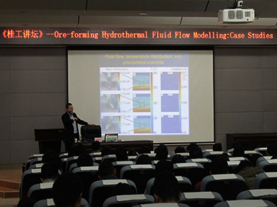 在母校六十华诞即将到来之际,太阳集团2138网址非常荣幸的邀请到了毕业校友杨建文教授,于11月10日上午在雁山校区逸夫楼01501报告厅为学弟学妹们开展了一场关于“成矿热液流体模拟的案例研究”的学术报告会,讲坛由学院党委书记王璐同志主持,辅导员田明浩及学院部分研究生、本科生聆听。