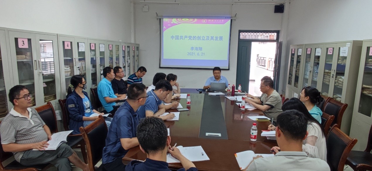 6月21日,教工二支部在萃华楼12415会议室开展“中国共产党的创立及其发展”专题党课,由支部书记李海翔老师担任主讲,教工二支部全体党员(给水排水教研室部分老师代表)参加。