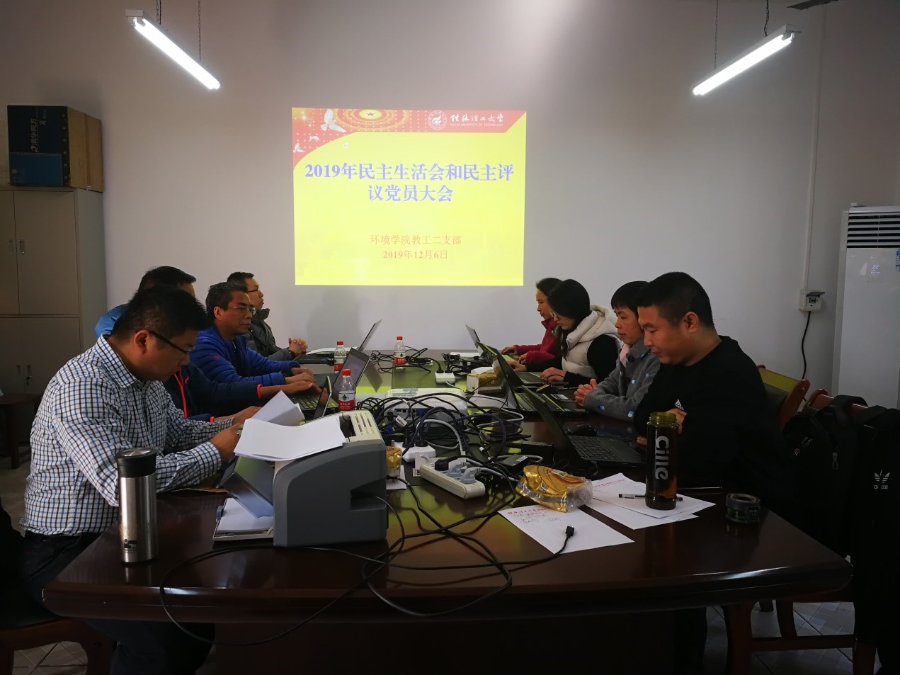 首先,召开党员大会,党支部书记李海翔老师代表党支部委员会向大会报告支部开展"不忘初心、牢记使命"主题教育情况,检视出来的具体问题以及整改措施。
