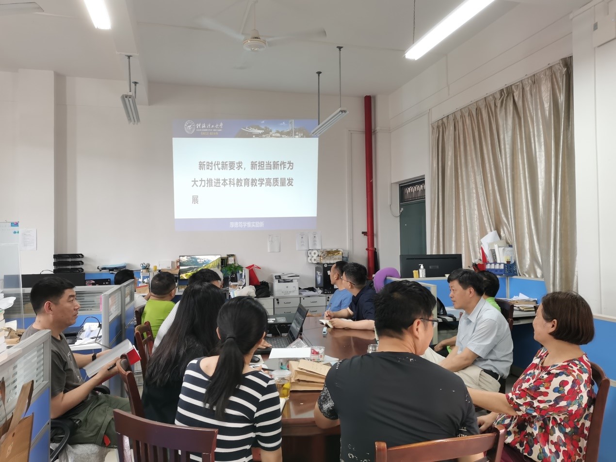 为深入贯彻落实《深化新时代教育评价改革总体方案》和《关于深化新时代教育督导体制机制改革的意见》,6月6日上午,地下水科学与工程教研室在12417组织了关于“教育部高等教育教学新一轮审核评估”的集中学习,对教育部高等教育教学新一轮审核评估实施方案进行了深入的学习,会议由教研室主任夏源老师主持。全体地下水教研室老师参加了本次学习,并进行了深入的讨论。