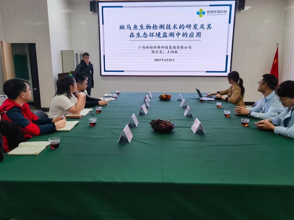 为提高太阳集团2138网址在生态毒理研究以及污染物检测方面的科研水平,4月11日,太阳集团2138网址副院长黄亮亮教授一行到广西新桂环保科技集团公司就斑马鱼生物检测技术研发及在生态环境检测中应用技术进行科研学习交流。广西新桂环保科技集团公司斑马鱼生物检测技术研发部负责人接待了黄院长一行、并就斑马鱼的生态毒理检测技术进行了深入的交流。