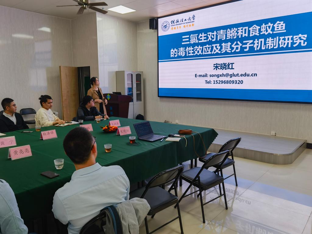 会上、广西新桂环保科技集团介绍了他们公司建成的集基因工程斑马鱼研发、繁育、生产和产业应用的国内先进的斑马鱼技术平台。并通过PPT展示介绍了他们借助国际领先的斑马鱼生物检测技术、基因编辑技术,开发的包含转基因斑马鱼和基因突变斑马鱼的基因工程斑马鱼品系100余种,并成功将斑马鱼生物检测技术应用于环境检测、农产品检测、化妆品和保健食品检测、中药材检测等产业应用场景,服务区域社会经济的高质量和绿色发展,为八桂大地青山常在、清水长流、空气常新保驾护航。同时太阳集团2138网址环境工程中心实验室副主任宋晓红高级实验师就模式鱼种对环境中污染物的应激方面做了相关的报告,与新桂环保科技集团进行了深层次的科研交流。