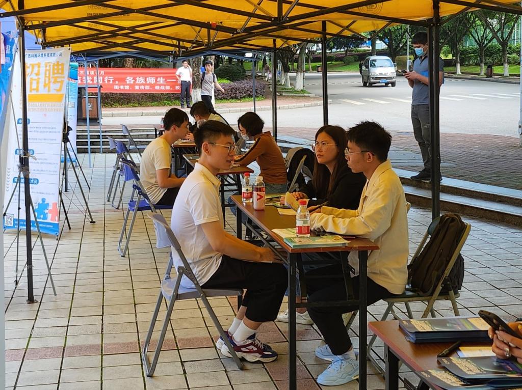 经过前期策划和组织,广西贺州北控水务集团、双胞胎集团、广西清润环保设备有限公司等来自区内外的10家企业单位入驻参会,提供了百余个优质就业岗位。本次双选会吸引了大量的应届毕业生参与,现场人头攒动、气氛热烈。毕业生们认真研读心仪企业的招聘信息、主动问询岗位情况、深入了解企业发展、积极地投递简历并参与现场面试,许多企业展位前排起了长队。同时,企业负责人也抓住机会与毕业生进行了充分的沟通交流,针对工作环境、薪资待遇、培训晋升等问题给出了详细解答。此外,更有太阳集团2138网址低年级的同学前来感受就业氛围,为以后的求职做充分准备。